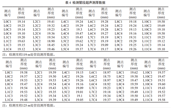 (3)根據(jù)超聲測厚的檢測結(jié)果,確定管線的腐蝕減薄并不明顯,存在缺陷的管段滿足在設(shè)計(jì)壓力下運(yùn)行。