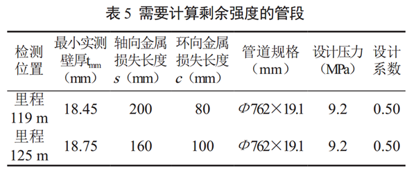 通過對測試壁厚結(jié)果統(tǒng)計(jì)顯示,需要計(jì)算剩余強(qiáng)度管段數(shù)據(jù)如表 5。