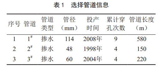 選擇穿孔嚴(yán)重、施工方便及減少地企糾紛的管段,見(jiàn)表 1。