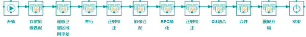 實(shí)現(xiàn)多種載荷、大量數(shù)據(jù)的自動(dòng)化處理,支持異源影像的自動(dòng)匹配,支持不同衛(wèi)星聯(lián)合區(qū)域網(wǎng)平差,有效保證成果精度的同時(shí)大幅度提高產(chǎn)品的生產(chǎn)效 率。遙感影像自動(dòng)化處理流程如圖 4所示。