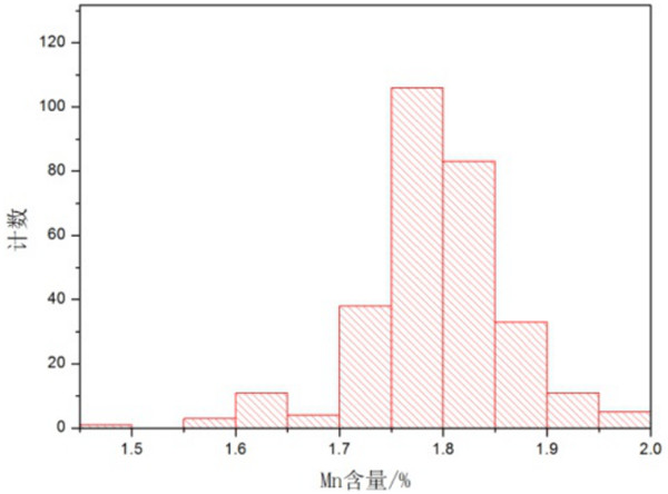 圖 2 X80鋼管的Mn含量分布統(tǒng)計