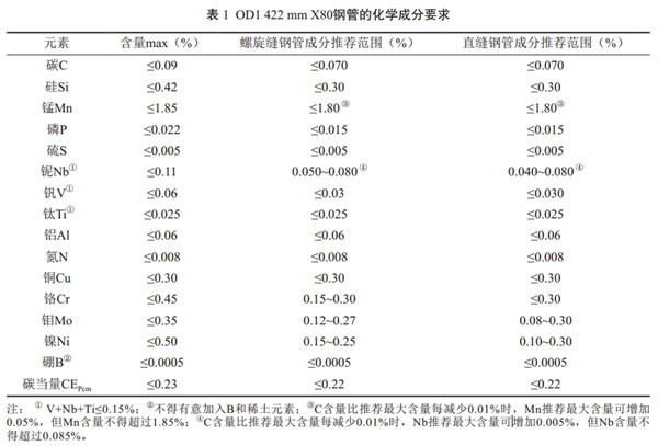1 OD1 422 mm X80管線鋼管關(guān)鍵技術(shù)指標