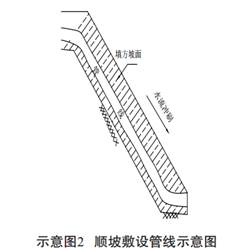 順坡敷設(shè)時(shí), 大量虛土被回填至管溝, 管溝回填土與原狀土相比, 抗沖蝕能力較弱, 在坡面徑流的沖刷作用下, 管溝回填土極易流失, 侵蝕過(guò)程是由面蝕向溝蝕的發(fā)展, 溝蝕發(fā)展的最終階段會(huì)造成整個(gè)管溝回填土體全部流失, 使管線暴露甚至懸空(示意圖2) 。