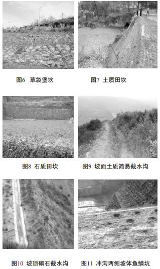 為防治流域內(nèi)荒坡或者坡耕地水土流失以及徑流集中進(jìn)入管溝而影響長(zhǎng)輸管道運(yùn)行安全和防止河道水流沖刷管道以及沖蝕岸堤, 西氣東輸二線甘陜管理處針對(duì)不同水土流失類型實(shí)施了相應(yīng)的綜合治理措施, 其主要有梯田土坎垮塌治理、坡面截留和排水工程, 伴行道路排水工程、 坡面夯實(shí)、 植物護(hù)坡、 漿砌石護(hù)坡、 擋土墻、 谷坊、漿砌石護(hù)岸擋墻、 灰土潛墻、 漿砌石潛墻、 過(guò)水面、 防沖墻等13種措施方法(圖6、 7、 8、 9、10、 11) , 取到了良好的防治效果。