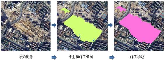 在油氣管道的眾多破壞因素中,項(xiàng)目施工出現(xiàn)的頻率最高,帶來(lái)的破壞性極強(qiáng),成為油氣管道巡檢的重點(diǎn)。施工場(chǎng)地具備的穩(wěn)定要素有裸土、板房和機(jī)械設(shè)備三種,根據(jù)其光譜、紋理、形狀及結(jié)構(gòu)等特征可以對(duì)油氣管道周邊的施工場(chǎng)地進(jìn)行有效的識(shí)別。