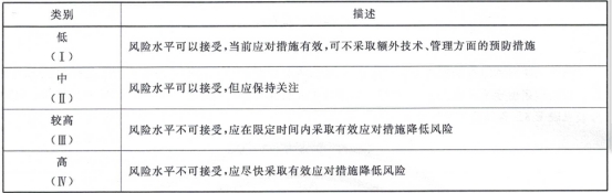 (3)風(fēng)險(xiǎn)評(píng)價(jià)階段:提倡結(jié)合評(píng)價(jià)目標(biāo)及數(shù)據(jù)完整度、經(jīng)濟(jì)投入等因素選擇適用的評(píng)價(jià)方法。風(fēng)險(xiǎn)矩陣法將風(fēng)險(xiǎn)分為低、中、較高和高4 個(gè)等級(jí)。見(jiàn)表 1。
