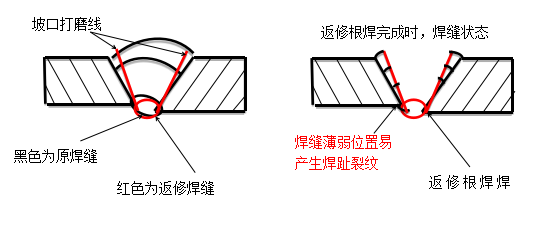返修時,應(yīng)根據(jù)探傷照片及實(shí)際缺陷分析情況,合理選擇返修打磨狀態(tài),以防止未焊透、未熔合、夾渣等缺陷產(chǎn)生。