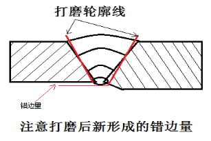 圖2 原焊縫錯邊時容易出現(xiàn)焊趾裂紋處的打磨示意圖