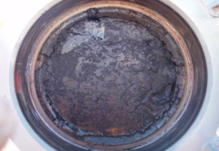 打開收球筒盲板,被雜質(zhì)塞滿 |