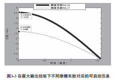 從 該 m a t l a b 仿 真 曲 線(xiàn) 可 知 摩 擦 系 數(shù) 介 于0.10~0.17之間時(shí)扭矩最大時(shí)的壓差應(yīng)小于2.666MPa~4.532 MPa,取決于摩擦系數(shù)(摩擦系數(shù)是在不斷變化的)。