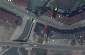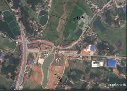 某管線鋼管直徑為D610mm,直管段全部采用L415螺旋縫埋弧焊鋼管,設(shè)計(jì)壓力為6.3 MPa。在施工圖設(shè)計(jì)階段,該評(píng)價(jià)段管道所處地區(qū)等級(jí)為二級(jí)地區(qū),鋼管設(shè)計(jì)壁厚為9.5 mm。評(píng)價(jià)段管道全部采用溝埋敷設(shè),根據(jù)施工圖信息,評(píng)價(jià)段管道管頂平均埋深為1.5 m。目前,評(píng)價(jià)段管道兩側(cè)5米間距處均建有兩排多層民房(見(jiàn)圖6),人口密度與施工建設(shè)活動(dòng)增多,導(dǎo)致管段所處區(qū)域的地區(qū)等級(jí)升級(jí)至三級(jí)地區(qū)。