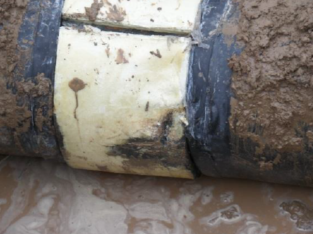 雖然標(biāo)準(zhǔn)中對聚氨酯泡沫閉孔率有嚴(yán)格要求,但僅限于工廠預(yù)制。在管道補(bǔ)口處,保溫層通常采用現(xiàn)場發(fā)泡或預(yù)制沫瓦,很難保證施工質(zhì)量。從國內(nèi)一些保溫管道以及長呼線的內(nèi)外檢測結(jié)果來看,外腐蝕問題主要集中在補(bǔ)口位置。2015年至2016年,中石油管道分公司開展了保溫管道腐蝕調(diào)查和研究,針對保溫層補(bǔ)口進(jìn)水問題,設(shè)計了管道防腐保溫層補(bǔ)口結(jié)構(gòu),開發(fā)了用于現(xiàn)場修復(fù)的聚氨酯保溫層發(fā)泡模具,應(yīng)用結(jié)果表明修復(fù)后的防腐保溫層具有較好密封性。同時還設(shè)計了補(bǔ)口處保溫層含水率監(jiān)測系統(tǒng),可實(shí)現(xiàn)對保溫層進(jìn)水的快速、準(zhǔn)確響應(yīng)。