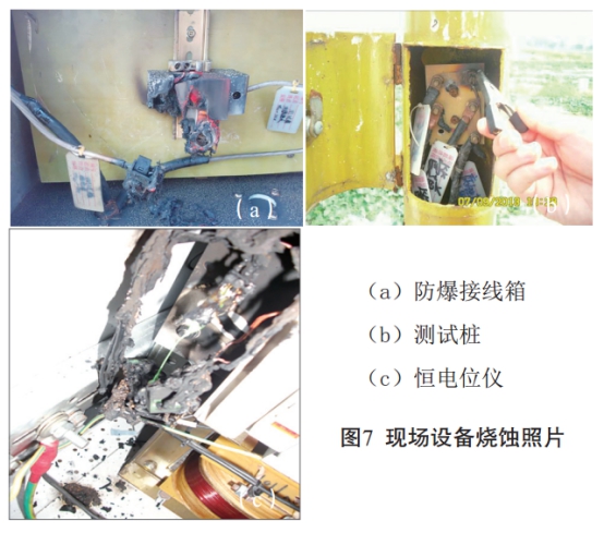 瞬間大電流阻性耦合會造成金屬管道設施放電、燒蝕,氣液聯(lián)動執(zhí)行機構誤操作,陰極保護電源設備、電位傳送器及等電位連接器燒毀,甚至出現(xiàn)金屬管件放電、燃燒、爆炸等嚴重事故。