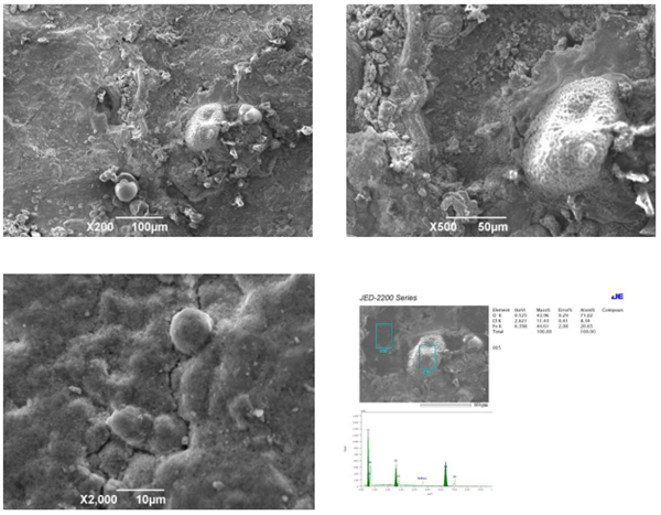 2段管道試樣的腐蝕產(chǎn)物形貌及EDS分析結(jié)果見(jiàn)圖9、圖10。