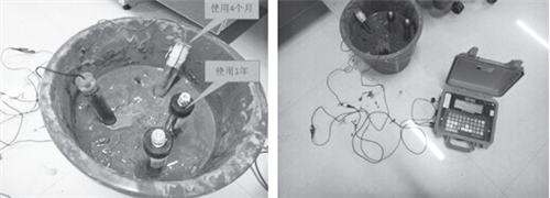 通過對比可知,上述2支參比電極與標(biāo)準(zhǔn)電極電位差大于5mv,說明2支電極均已失效,已不能滿足工程測量精度要求。隨著使用時(shí)間的延長,參比電極受離子污染程度越深,電極自身電位偏差越大。