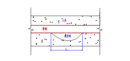 結(jié)合管道受力特點(diǎn),針對(duì)管道可能的暗懸,確定其安全跨度,設(shè)置剛性支墩。