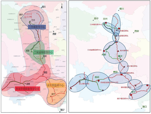 由于油氣管道具有點(diǎn)多線(xiàn)長(zhǎng)的特點(diǎn),為確保一旦發(fā)生突發(fā)事件應(yīng)急搶險(xiǎn)的有效性,依據(jù)中石油管道及儲(chǔ)運(yùn)設(shè)施維搶修體系規(guī)劃,在建設(shè)階段,西南管道公司在蘭州、天水、成都、貴陽(yáng)、遵義、昆明、保山、南寧、柳州等地部署了12個(gè)維搶修隊(duì)伍。但由于西南管道所轄區(qū)域“三多一差”的特點(diǎn) (山多、河流多、地災(zāi)多、社會(huì)依托差),結(jié)合公司實(shí)際情況以及分析新的形勢(shì),為切實(shí)提高應(yīng)急有效性,公司多次研究,不斷調(diào)整,按照“做大做強(qiáng)維搶修分公司、合理設(shè)置維搶修中心(隊(duì))、站場(chǎng)承擔(dān)搶險(xiǎn)前期控制”的思路,公司維搶修體系設(shè)置為四級(jí),即:維搶修分公司、維搶修中心、維(搶?zhuān)┬揸?duì)、站場(chǎng)。公司專(zhuān)業(yè)維搶修隊(duì)伍將由目前12支減少為11支,其中維搶修分公司1支、維搶修中心3支、維(搶?zhuān)┬揸?duì)7支,使維搶修隊(duì)伍布局更加科學(xué)合理。