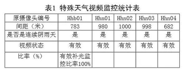考慮陰雨等特殊天氣,按照蓄電池放電深度為75%計(jì)算,每天負(fù)載耗電量為1623WH。則7個(gè)連續(xù)陰雨天需要蓄電池容量為1623×7/24/0.75=630AH,根據(jù)選型規(guī)則選擇12V/200AH膠體蓄電池,則選用12V/200AH蓄電池6塊,組成24V/600AH蓄電池組,滿足設(shè)備連續(xù)7個(gè)陰雨且無(wú)風(fēng)天氣條件下風(fēng)光互補(bǔ)供電仍可以正常工作,詳見(jiàn)表1。實(shí)施后有效補(bǔ)光監(jiān)控比率達(dá)到100%,措施有效。