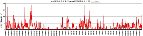 根據(jù)以上測量數(shù)據(jù),結(jié)合現(xiàn)場調(diào)查結(jié)果,可發(fā)現(xiàn)電氣化鐵路對該管道的交流干擾具有以下特點。