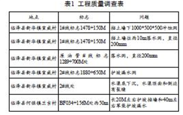 護(hù)坡質(zhì)量調(diào)查結(jié)果見表1。