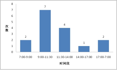 圖4 各時間段光纜中斷次數(shù)分布圖