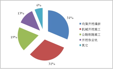 圖3 第三方施工損傷光纜事故類型比例