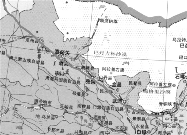 西氣東輸四線西段(甘肅段)線路走向示意圖