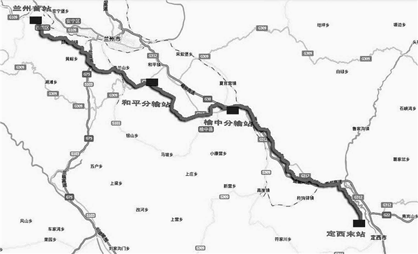 蘭州—定西輸氣管道工程線路走向示意圖