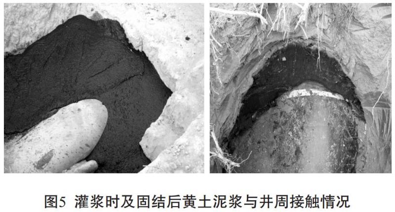 關鍵點四:間歇時間。 黃土泥漿凝結時間較長, 施工過程相對較短, 現(xiàn)場黃土泥漿試驗表明, 黃土泥漿初凝時間20h以上, 故采取灌漿間歇24h~36h后再進行下一次灌漿為宜, 既保證前一次灌注的黃土泥漿具有一定的強度, 又不耽誤施工工期。