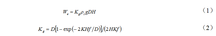 式中,We 為單位長度管頂土壓力;Kg 為管頂豎向土壓力集中系數(shù);K為水平土壓力系數(shù);f 為管土摩擦因數(shù);ρs 為圍土密度;D為管道外徑;H為管頂回填土厚度。