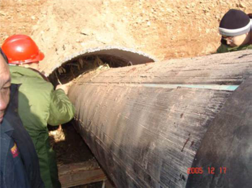 在西氣東輸三線工程等定向鉆穿越工程中采用改性環(huán)氧玻璃鋼防護(hù)層,取得了良好的效果,見圖14。