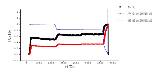 Φ457爆破試驗(yàn)應(yīng)變片與弱磁信號(hào)對(duì)比圖