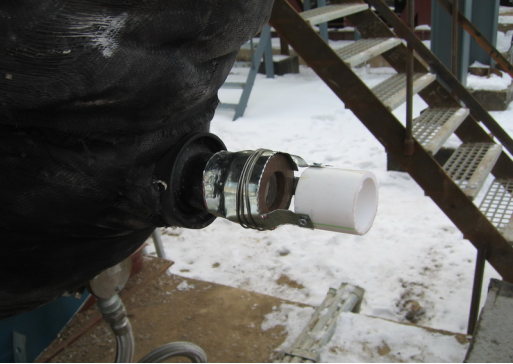 ③煙囪放空管線安裝位置不合理。蒸汽發(fā)生器煙囪放空管線安裝在離底部約1m處,燃燒產(chǎn)生的水無法及時排出,導(dǎo)致煙囪積水凍裂。如圖7所示。