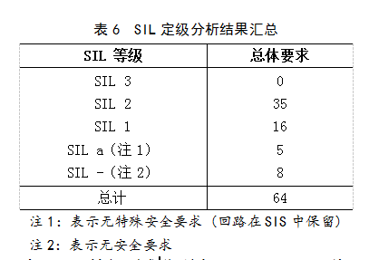本次SIL定級(jí)研究共針對(duì)64個(gè)SIF進(jìn)行了分析。分析過(guò)程中分別考慮了針對(duì)安全、環(huán)境和資產(chǎn)的SIL要求,從而確定總體的SIL要求。SIL定級(jí)分析的結(jié)果匯總見(jiàn)表6。
