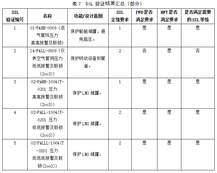 本次SIL驗(yàn)證回路共51個(gè),SIL等級(jí)要求分別為SIL1、SIL2二種。對(duì)于驗(yàn)證無(wú)法通過(guò)的回路,提出了相應(yīng)的整改方案。部分驗(yàn)證結(jié)果見(jiàn)表7。