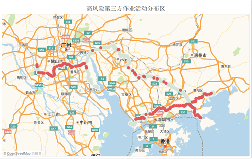 數(shù)據(jù)可視化讓管道巡防人員能夠更為全面、及時(shí)地掌握可能實(shí)施危及管道安全的施工作業(yè)動(dòng)態(tài),從而可以更加輕松地找準(zhǔn)管道保護(hù)宣傳工作重點(diǎn)。例如,在施工活動(dòng)活躍度高的地段,管道保護(hù)宣傳要從發(fā)展管線(xiàn)信息員隊(duì)伍和建立屬地基層行政組織管道保護(hù)聯(lián)防關(guān)系入手,編織“上下互通、合縱連橫”的管道安防預(yù)警信息網(wǎng)。