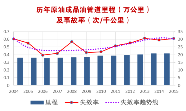 圖1 美國(guó)油品管道里程及失效率