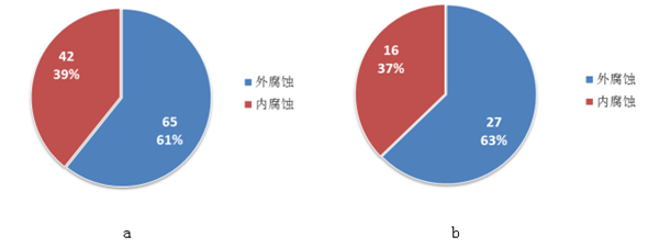 圖5 美國(guó)管道腐蝕失效原因(a油管道,b氣管道)