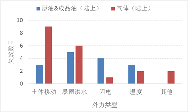 圖8 美國(guó)油氣管道自然外力導(dǎo)致失效情況