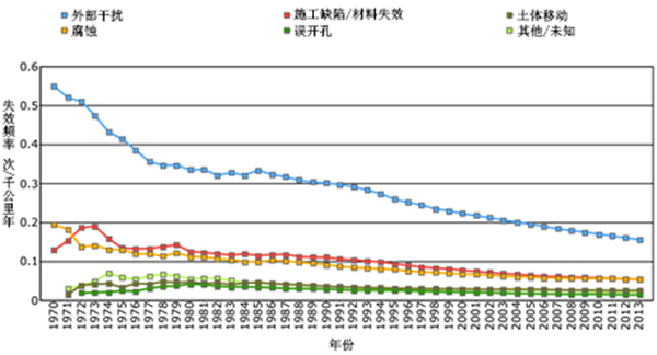 圖16 加拿大歷年管道失效頻率