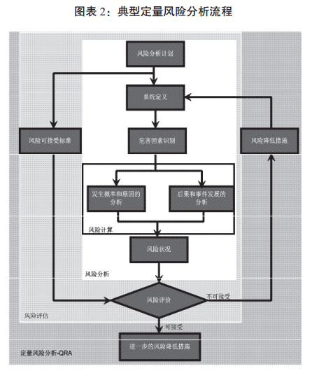定量風(fēng)險(xiǎn)分析(QRA)是一種普遍應(yīng)用的,采用量化指標(biāo)描述、定義和評(píng)估風(fēng)險(xiǎn)的一種風(fēng)險(xiǎn)分析方法,如圖表2所示。