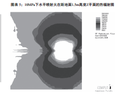 利用計(jì)算軟件確定泄漏后不同事故后果的嚴(yán)重程度,包括噴射火、閃火和爆炸,圖表5展示了10MPa壓力下水平方向噴射火的熱輻射值分布。依據(jù)不同的事故結(jié)果可以確定管道沿線某固定位置處的人員死亡概率,乘以泄漏頻率和點(diǎn)火概率即為該位置的人員死亡風(fēng)險(xiǎn)。
