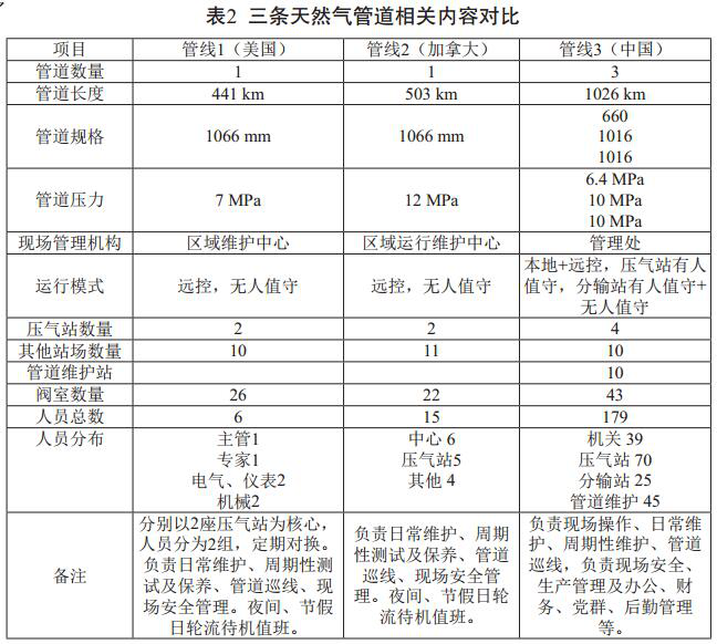 ( 2)運(yùn)行管理模式差異明顯北美天然氣管道站場運(yùn)行均由調(diào)控中心控制,站場以無人值守站為主,采用站場自動控制和調(diào)控中心遠(yuǎn)控。管道沿線按區(qū)域設(shè)置有運(yùn)行維護(hù)機(jī)構(gòu)及極少量維護(hù)人員,主要負(fù)責(zé)所轄區(qū)域內(nèi)站場、管線的現(xiàn)場維護(hù)管理。管道維搶修、大型設(shè)備維檢修、專業(yè)化維檢修等主要依托第三方服務(wù)商,甚至管道運(yùn)行也可委托相關(guān)調(diào)控中心負(fù)責(zé),通過合同管理保障管道的運(yùn)營和應(yīng)急處置。