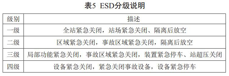 通過開展SIL評估活動,對照IEC 61508、 IEC61511標(biāo)準(zhǔn)識別站場安全功能回路,確定對應(yīng)的SIL等級,查找不符合問題。針對系統(tǒng)安全可靠性和可用性的平衡問題,制定出統(tǒng)一的ESD分級控制和緊急控制功能(見表5),并提出了明確的功能安全管理和全生命周期管理的概念和要求。