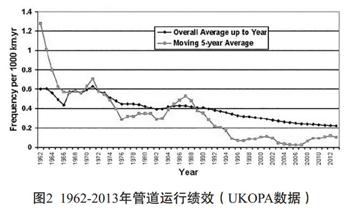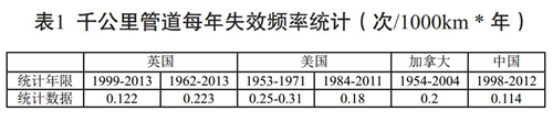 英國(guó)HES當(dāng)局發(fā)布的全國(guó)管道行業(yè)失效數(shù)據(jù)如圖 2所示,與其他國(guó)家比較(見表1),處于較好的水平。英國(guó)管道的建設(shè)年代均早于1993年,因此從側(cè)面反映管道的運(yùn)行績(jī)效是值得參考與借鑒的。