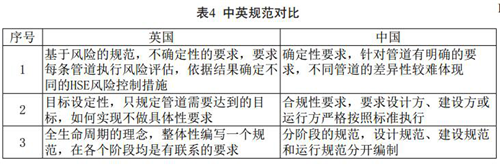 通過(guò)以上對(duì)英國(guó)天然氣管道行業(yè)的規(guī)范體系介紹,對(duì)比國(guó)內(nèi)現(xiàn)行的規(guī)范,可以發(fā)現(xiàn)主要的區(qū)別如表4所示。