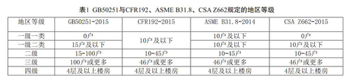 GB50253和GB50251在修訂過程中,總結(jié)了國內(nèi)近年來油氣管道工程實踐和經(jīng)驗,并參考了美國機械工程師學會( ASME)、加拿大標準協(xié)會( CSA)等北美的油氣管道標準以及美國聯(lián)邦法規(guī)( CFR),但比較它們的內(nèi)容結(jié)構(gòu)與條文規(guī)定,仍存在一些重要差別。本文將分析對比它們在地區(qū)等級劃分、設(shè)計系數(shù)、線路截斷閥間距、管道與周邊建構(gòu)筑物的間距、放空、試壓、管輸氣體加臭等方面存在的差異。本文對比分析的ASME B31.4的版本是2012年版,其他若不加特別說明,均指所述法規(guī)、標準的最新版本。