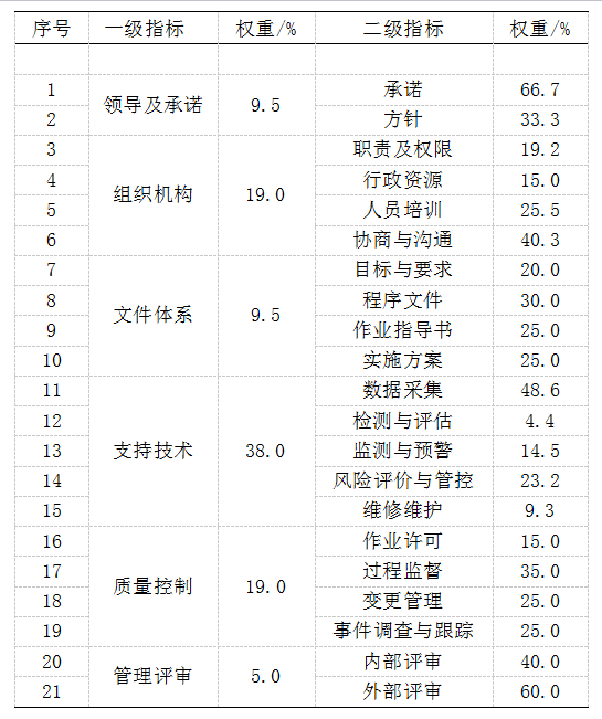 該審核指標體系涵蓋了管道完整性管理的各項具體要求,能夠科學(xué)、全面地反映管道完整性管理活動開展的工作現(xiàn)狀,不僅著眼于完整性的實施有效性,更著重于體系架構(gòu)的全面性和技術(shù)內(nèi)容的準確性,要素設(shè)置全面,問題設(shè)置合理。