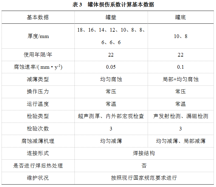 常壓儲罐基于風(fēng)險的檢驗(RBI),依據(jù)《常壓儲罐基于風(fēng)險的檢驗及評價》(GB/T 30578―2014)進(jìn)行,對儲罐進(jìn)行損傷機(jī)理分析和風(fēng)險的定量計算,并根據(jù)風(fēng)險大小以及檢驗的有效性確定儲罐的檢驗策略(包括檢驗類型、檢測方法、檢測部位和下次檢驗時間)。2016年3月28日進(jìn)行了RBI檢驗(),形成了《常壓儲罐風(fēng)險評估報告》主要內(nèi)容如下。
