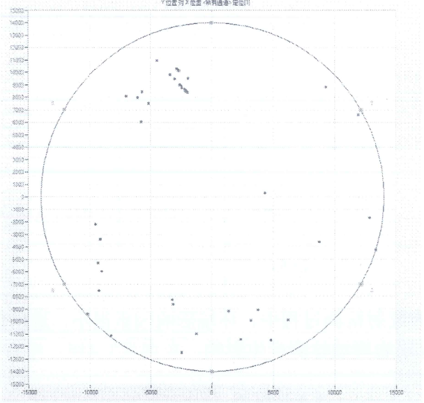 2016年2月26日進(jìn)行了聲發(fā)射檢測,聲發(fā)射檢測液位宜在最高操作液位的85%~100%之間,若遇特殊情況,檢測液位應(yīng)至少高于傳感器安裝位置1 m以上。檢測前,關(guān)閉罐根閥并保持儲存介質(zhì)靜置2 h以上.檢測時,繼續(xù)關(guān)閉罐根閥及其它干擾源,如攪拌器、加熱設(shè)施、泵、施工機(jī)械等。采用聲發(fā)射檢測儀PAC SAMOS-48,檢測頻率20~100 kHz,檢測過程中周邊環(huán)境干擾因素滿足檢驗要求。檢測厚,從罐底板的定位事件圖(圖2)上可以看出,罐底中心基本無定位事件,說明底板的腐蝕或定位較低,底板處于穩(wěn)定狀態(tài)。經(jīng)對噪聲信號濾波處理后,剩余聲發(fā)射事件數(shù)量基本消滅,排除罐底產(chǎn)生泄漏缺陷。依據(jù)《無損檢測 常壓金屬儲罐聲發(fā)射檢測及評價方法》(JB/T 10764-2007)將該罐底板評定為Ⅰ級(分Ⅰ-Ⅴ級,Ⅰ級為最低級別,表示少量腐蝕,不需要維修)。